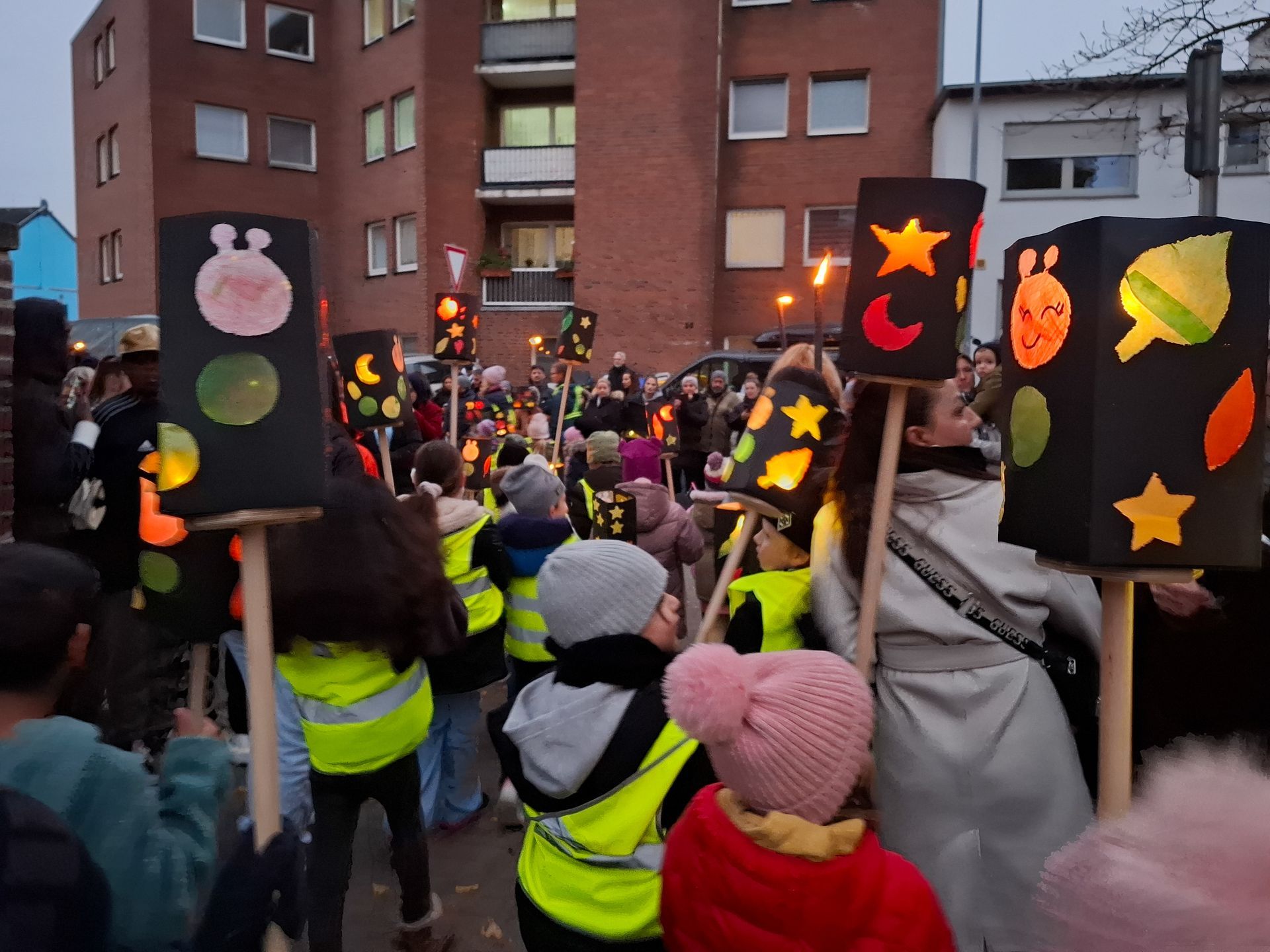 Am 8. November 2024 haben wir unser diesjähriges Martinsfest gefeiert. Gegen 16:45 Uhr haben wir uns mit unseren Laternen auf dem Schulhof getroffen und haben gespannt gewartet, bis es los geht. Zum Glück wurde es inzwischen immer dunkler, sodass man unsere Laternen toll leuchten sehen konnte. Einige Kinder haben sich sogar getraut, eine echte Kerze in ihre Laterne zu stellen!