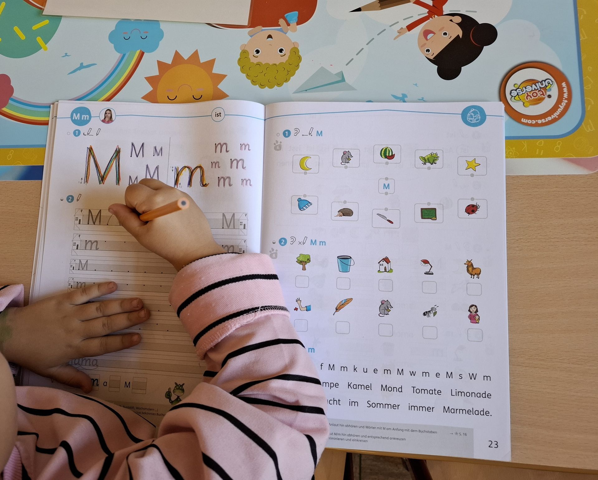 Am 21. September war unser Tag der offenen Tür. An diesem Tag können die Eltern und die zukünftigen Erstklässler zu uns kommen, um sich die Schule anzuschauen. Wir haben heute an einem Buchstabenplan zum M und m gearbeitet!