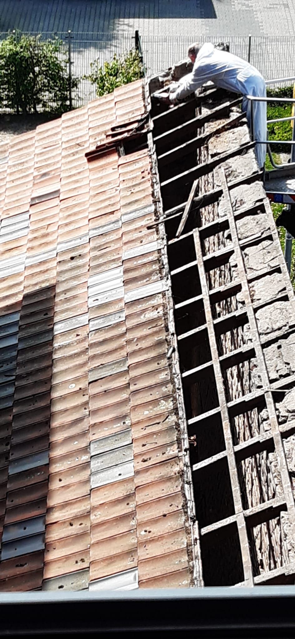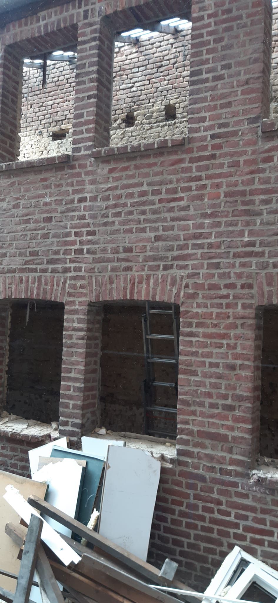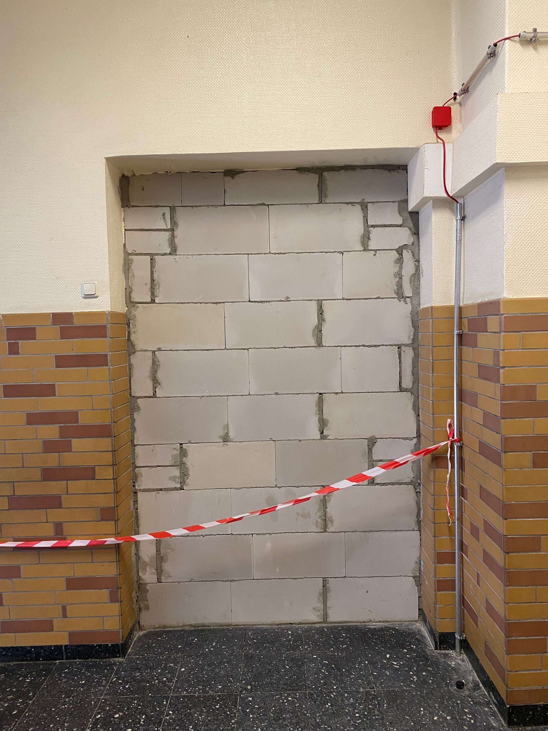 Die ehemaligen Türen wurden zugemauert, die Räume entkernt und der Dachstuhl entfernt.
