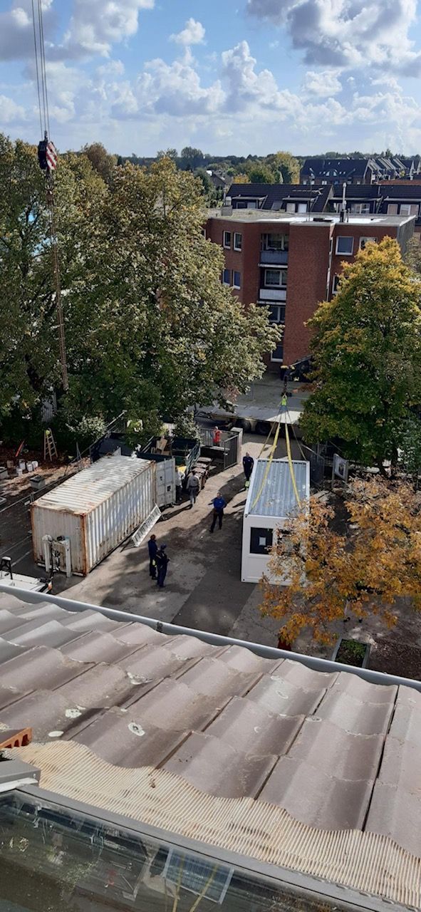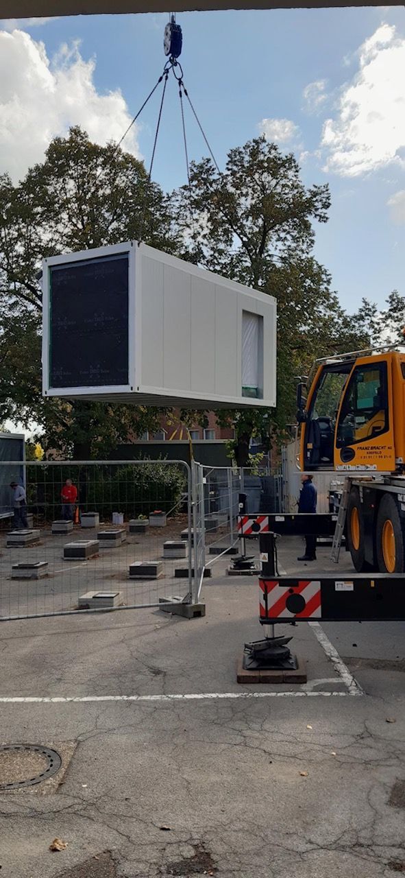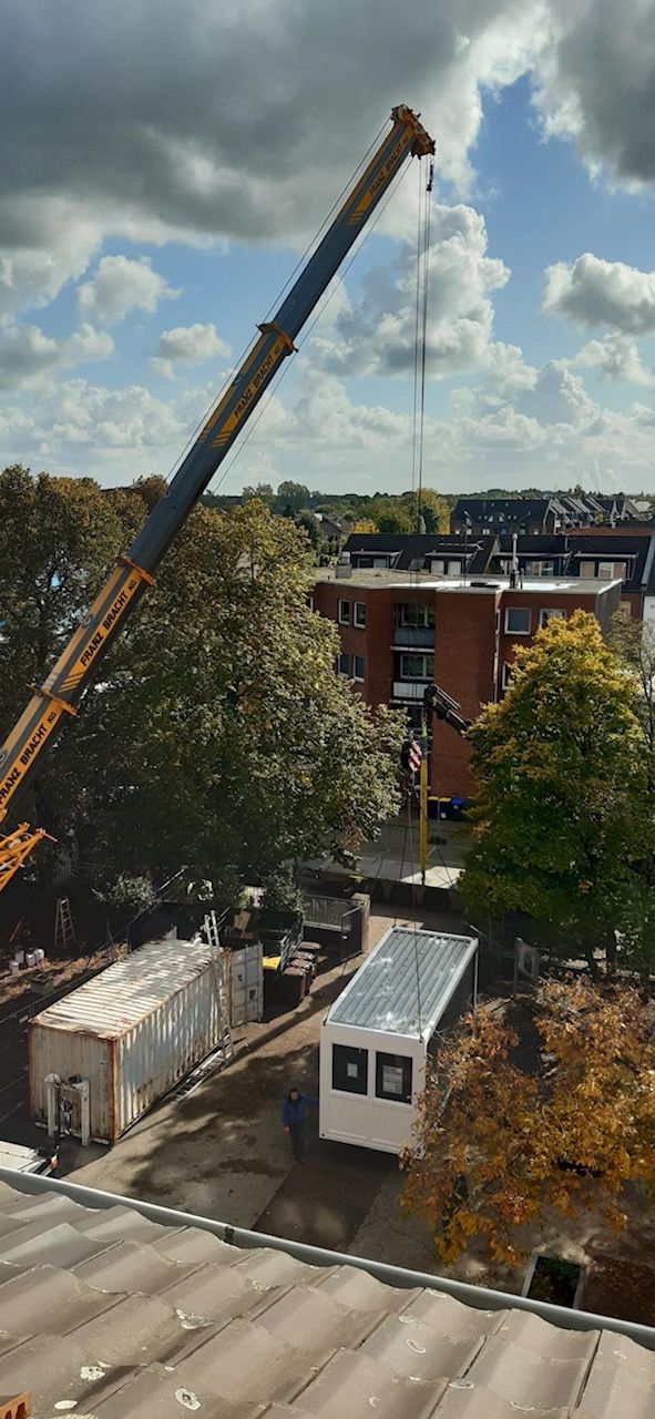 Am 11. Oktober 2024 wurden die Container geliefert, die uns während der Bauarbeiten als Ausweichraum dienen sollen.